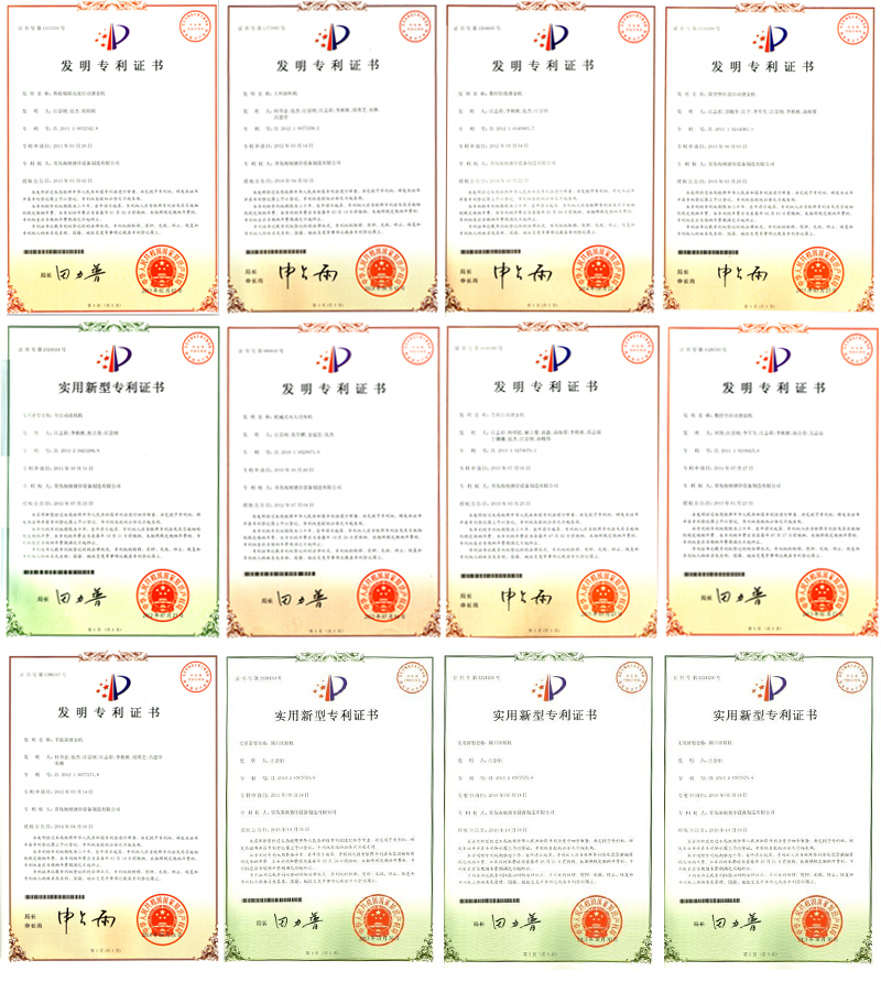 海剛公司成立14年以來,一直秉承開拓、創(chuàng)新的技術(shù)理念,敢想、敢做、不斷探索進(jìn)取。在江崇剛總經(jīng)理的正確引導(dǎo)帶領(lǐng)下和員工們的積極開拓研發(fā)下,獲得20多項(xiàng)發(fā)明專利以及50多項(xiàng)實(shí)用新型專利。被評為山東省專利明星企業(yè)。企業(yè)將專利合理有效的應(yīng)用于設(shè)備生產(chǎn)中。依靠專利,促進(jìn)了產(chǎn)品的創(chuàng)新,提高了產(chǎn)品的技術(shù)含量和質(zhì)量。